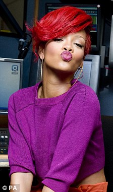 Rihanna sporting her shocking 'do has lots of hue. Her do is amazing with the shocking hue red it looks so good with the pink fuchsia shirt Wow I'm feeling it.